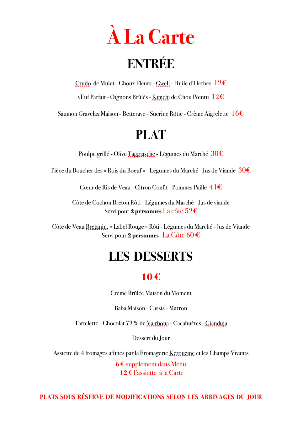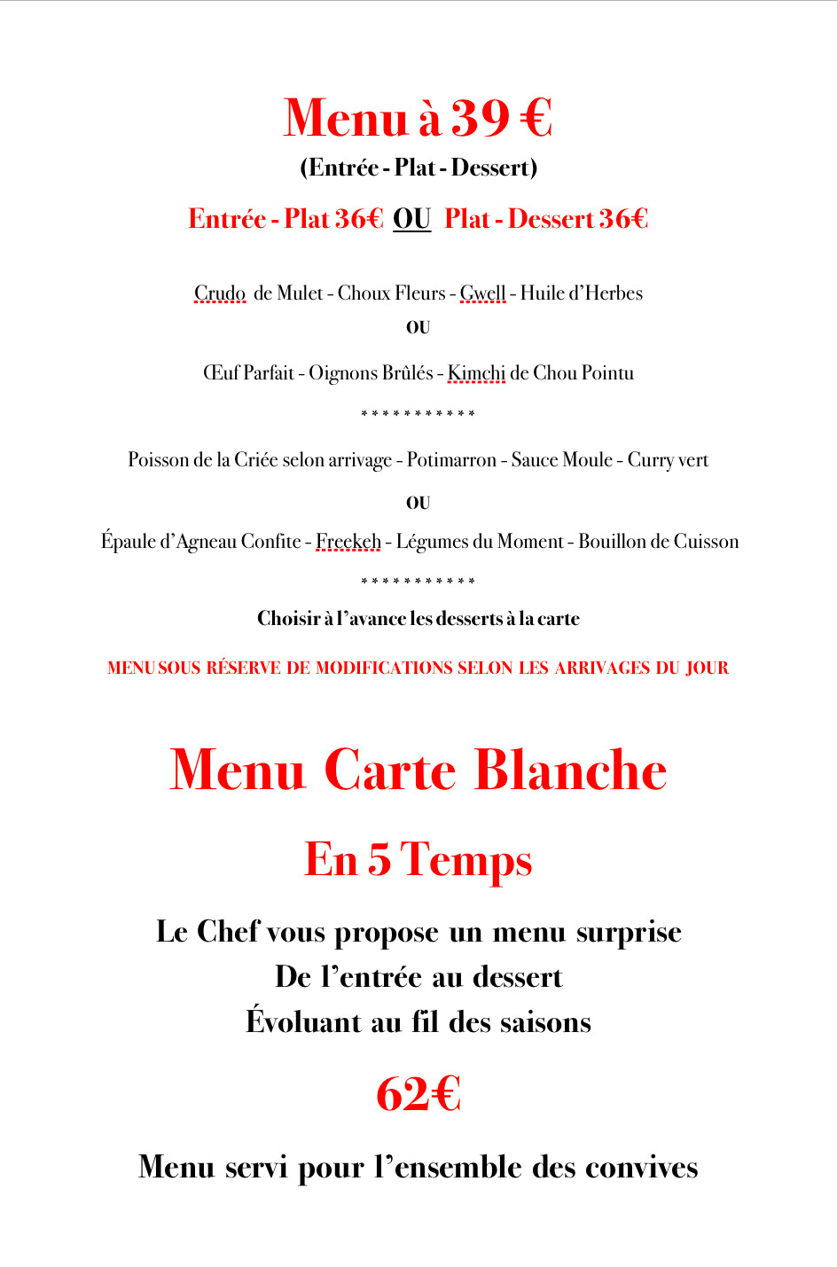 Nous vous proposons une cuisine proche des produits en favorisant le marché local ! Nous mettons en avant les goûts ! Nous sommes toujours en recherche de nouvelles idées afin de satisfaire au mieux vos envies!